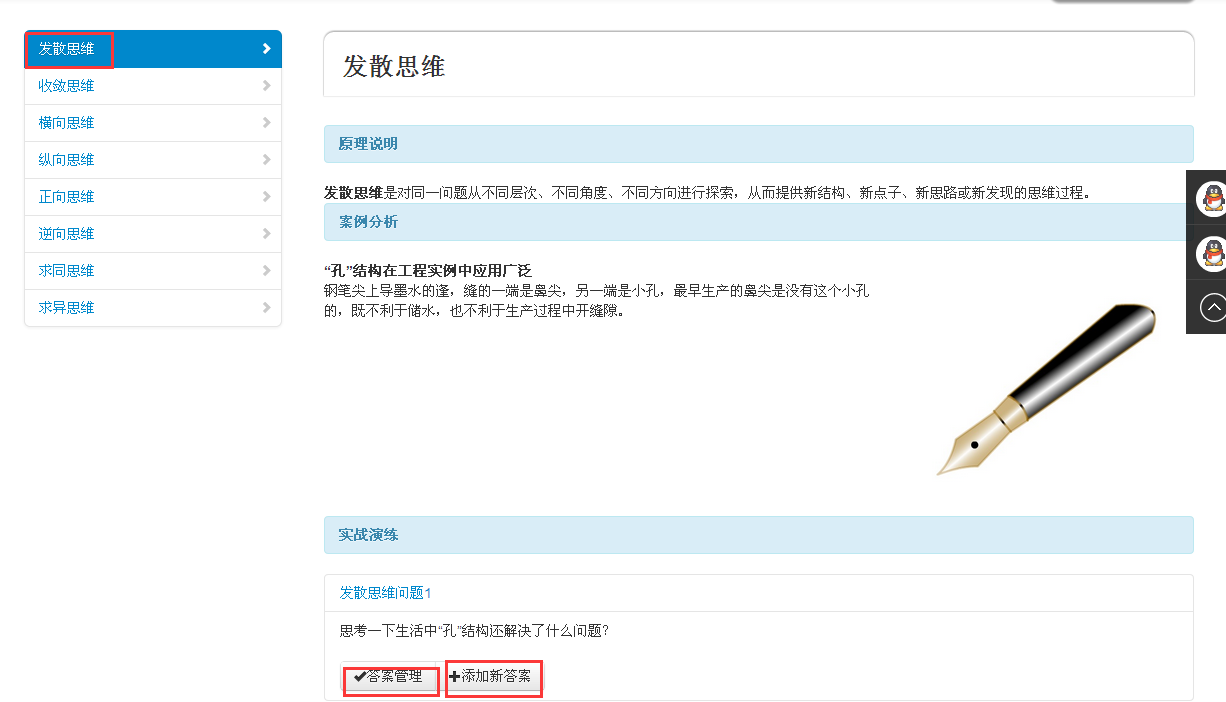 3、在实战演练模块,用户可以针对相应的问题添加答案,如图4所示。如果要查看或者编辑添加的答案,点击“答案管理”可以对添加的答案进行编辑,如图5所示。